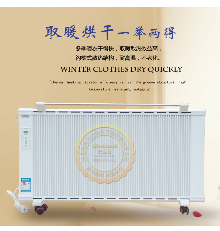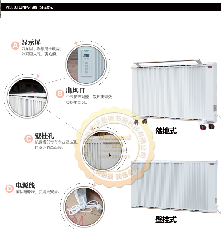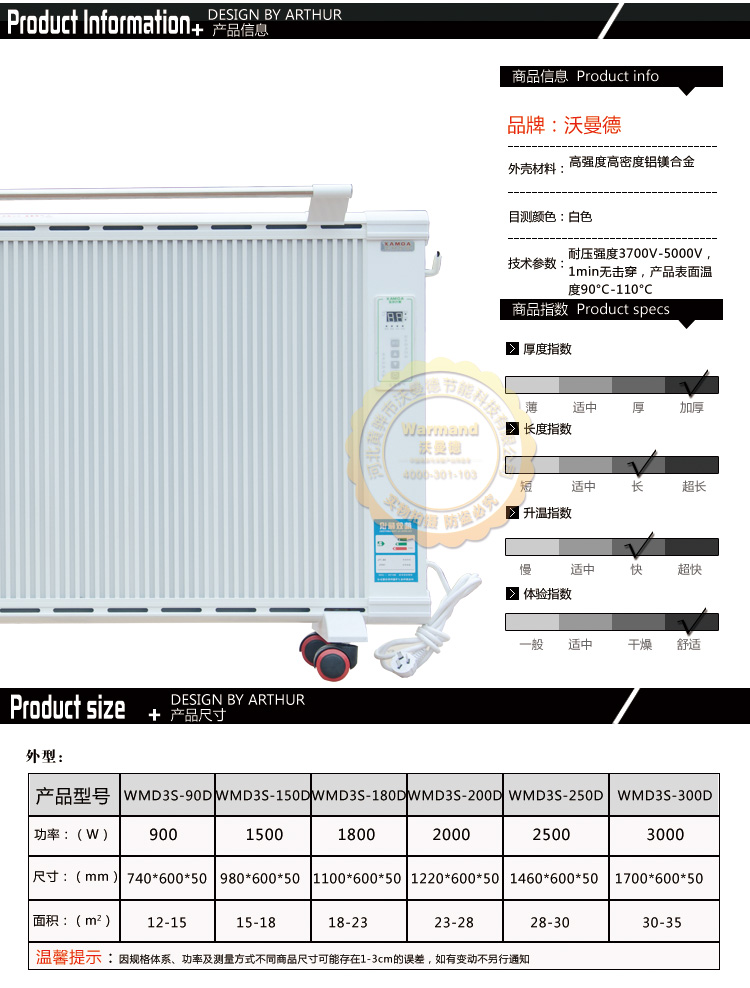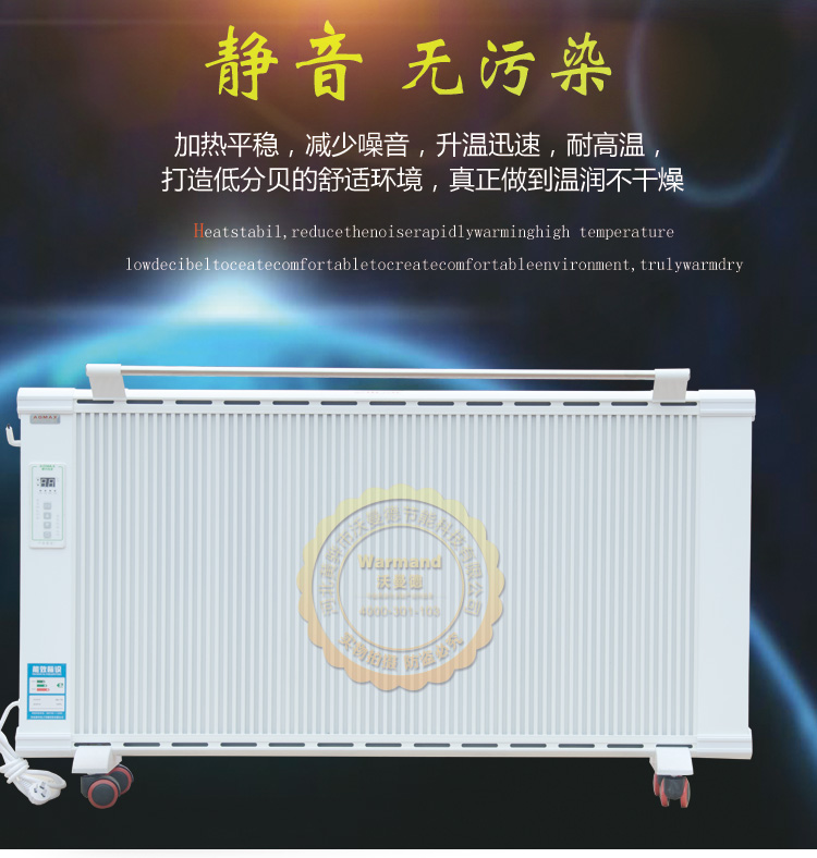 沃曼德碳晶電曖器,分為壁掛式、地暖式,功率從900-1500W,造型美觀大方、結構堅固耐用,