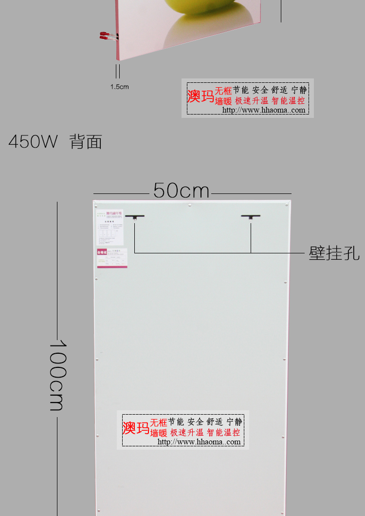 尺寸:500mm*1000mm 厚度:15mm功率:450瓦