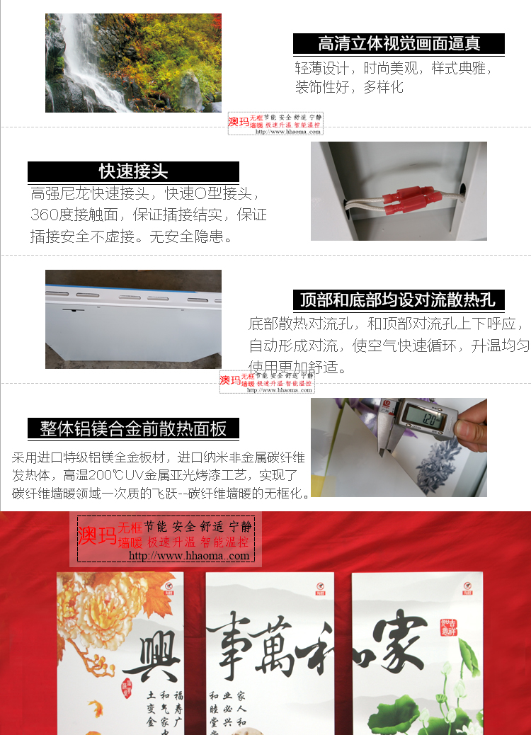 澳瑪電器有限公司現(xiàn)擁有自主品牌“澳瑪”碳晶墻暖、電地暖、電暖器、電采暖爐暖等,作為專業(yè)研發(fā)生產(chǎn)銷售碳纖維無框墻暖、碳晶有框墻暖的廠家,已經(jīng)躋身于中國遠(yuǎn)紅外保健采暖行業(yè)的行列,我們一直在追求品質(zhì)可靠,消費(fèi)者第一,把節(jié)能環(huán)保的好產(chǎn)品介紹給大家,我們保證質(zhì)量、真材實(shí)料、一定讓客戶感覺到、體會到、看得到真正的物有所值,希望能與所有合作的客戶們成為志同道合的朋友,可以彼此信任!本廠產(chǎn)品保證正品,{使用壽命長達(dá)10萬小時(shí)},最重要批發(fā)價(jià)格優(yōu)惠,本廠大量批發(fā),為信譽(yù),銷量,保證正品品質(zhì)中最優(yōu)惠的價(jià)格.