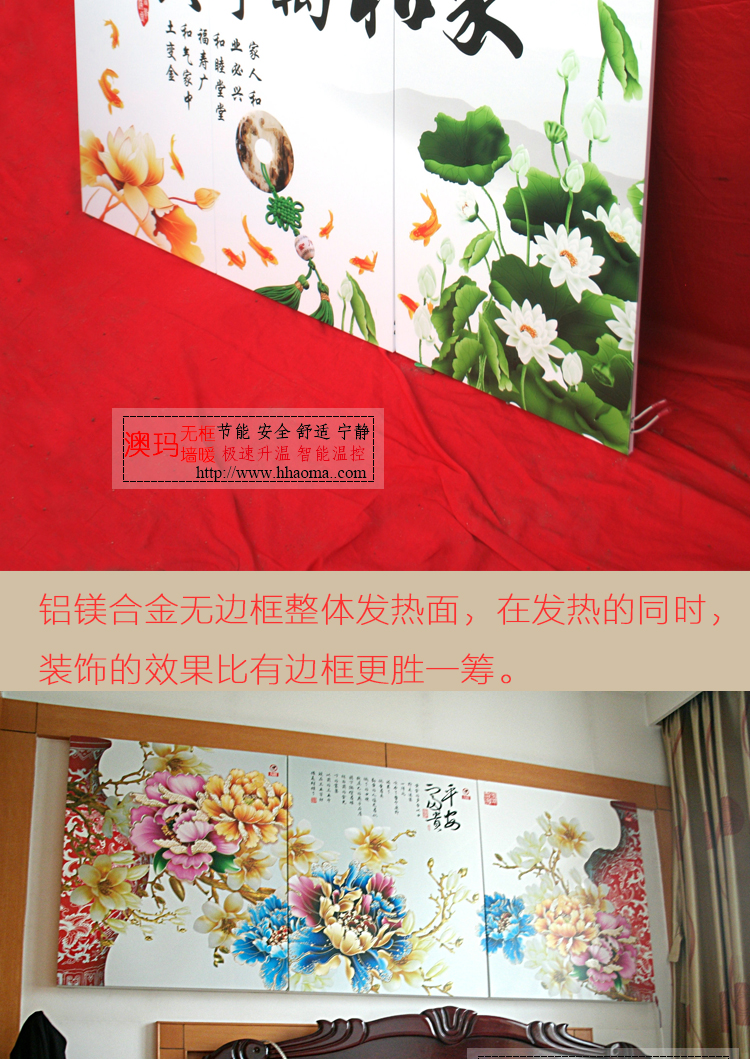 畫面定做:澳瑪無框墻暖,畫面可以隨意定做。(比如結(jié)婚照、旅游寫真、全家福等等),需用戶提供符合標(biāo)準(zhǔn)的原圖,更多詳情請至電澳瑪電器公司。